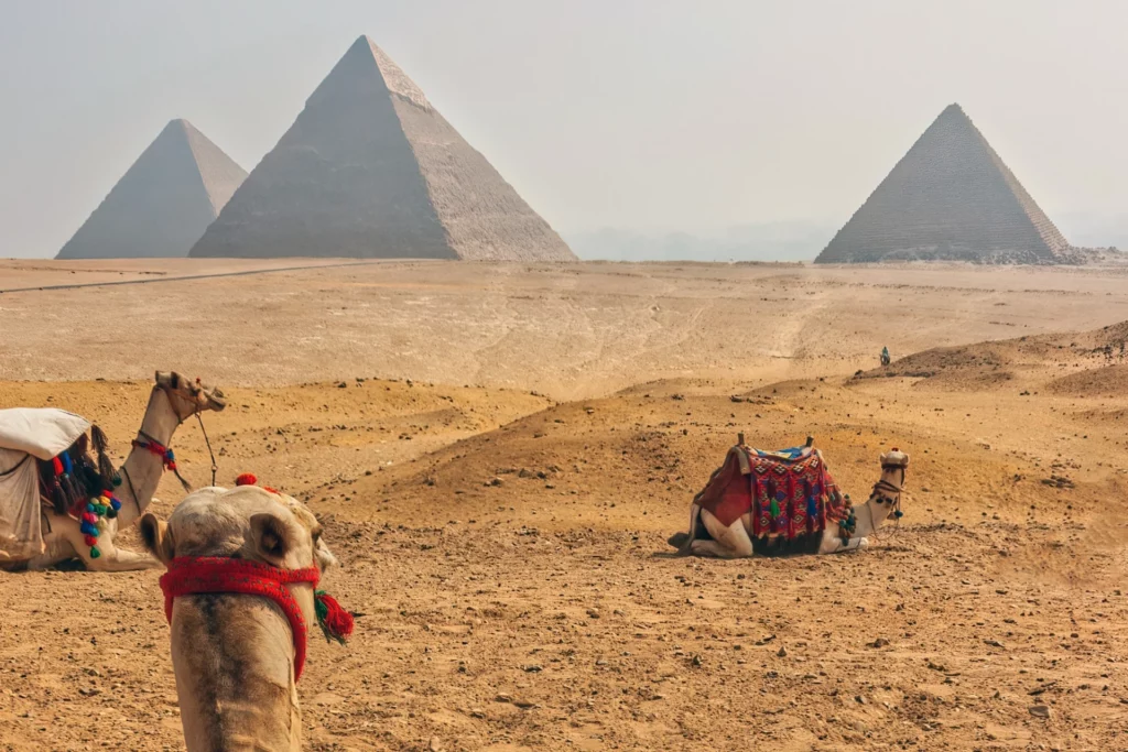 | 世界一大きなピラミッド | ギザの三大ピラミッド | エジプト | ギザの三大ピラミッドの中でも最大なのが、クフ王のピラミッド。高さ138.8m(作られた当時は146.6m)、一辺の長さは230.37mもあるよ。建造に20年以上かかったといわれているんだ。 |